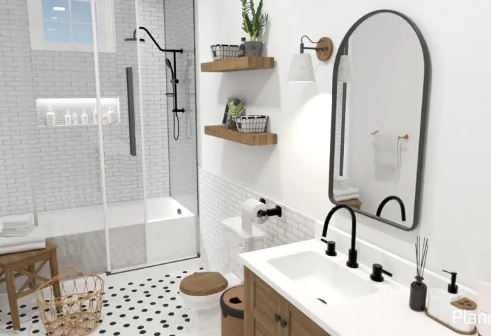 Select Materials: Pick tiles, grout, waterproofing, countertops, and finishes (e.g., chrome, matte black).